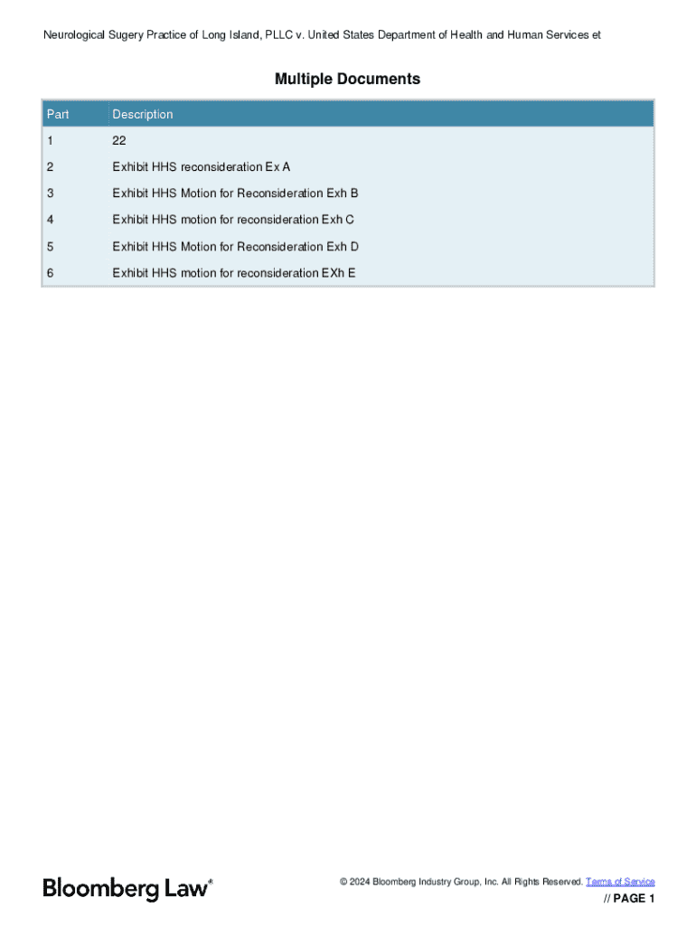 Neurological Sugery Practice of Long Island, PLLC v. United States Department of Health and Human Services etMultiple Documents PartDescription1222Exhibit HHS reconsideration Ex A3Exhibit HHS Motion for Reconsideration Exh B4Exhibit HHS motion for reconsideration Exh C5Exhibit HHS Motion for Reconsideration Exh D6Exhibit HHS motion for reconsideration EXh E 2024 Bloomberg Industry Group, Inc. All Rights Reserved. Terms of Service// PAGE 1Case 1:23cv02977BMC