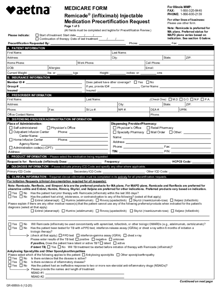 For Illinois MMP: FAX: 18553208445 PHONE: 18666002139MEDICARE FORM Remade () Injectable Medication Recertification Requestor other lines of business: Please use other form. Page 1 of 5 (All fields
