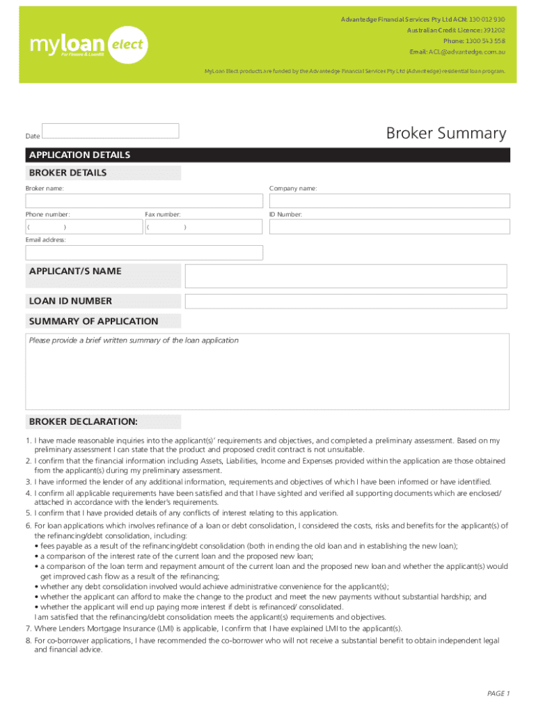 Advantedge Financial Services Pty Ltd ACN: 130 012 930 Australian Credit Licence: 391202 Phone: 1300 543 558 Email: ACL@advantedge.com.au MyLoan Elect products are funded by the Advantedge Financial