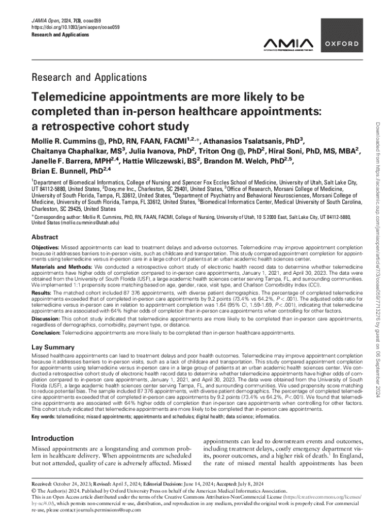 Get the free Telemedicine Appointment Completion Study