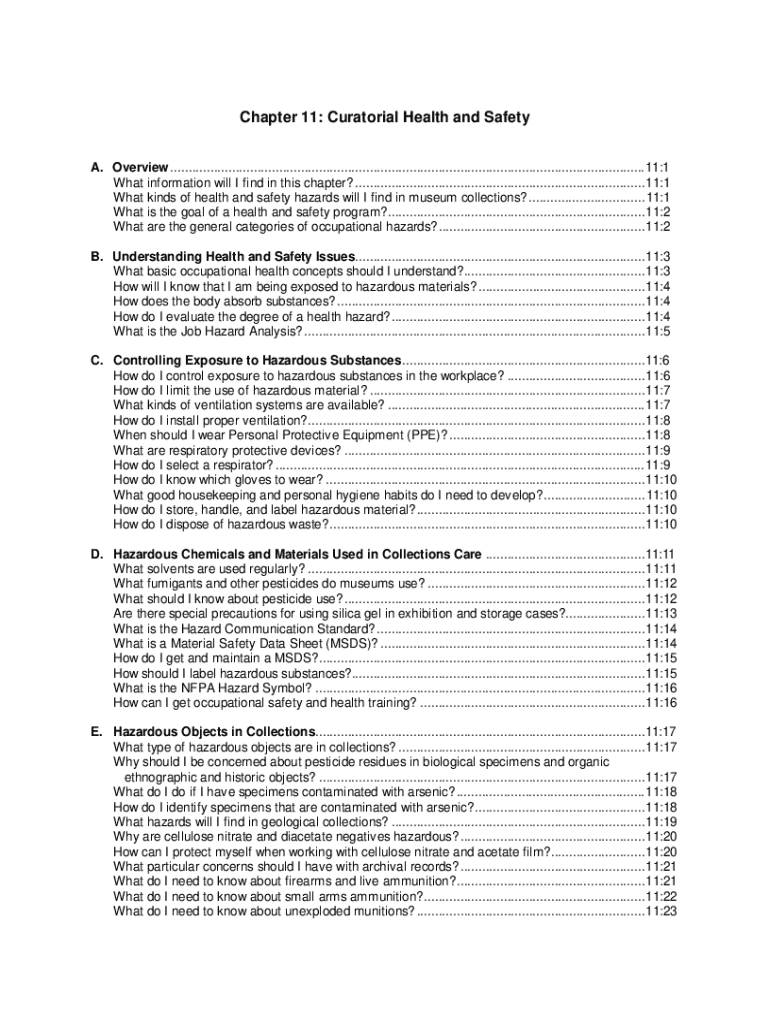 Chapter 11: Curatorial Health and Safety A. Overview ...................................................................................................................................11:1 What information