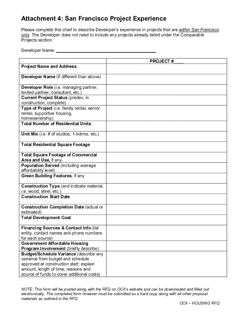 Get the free Attachment 4 - San Francisco Projects Form