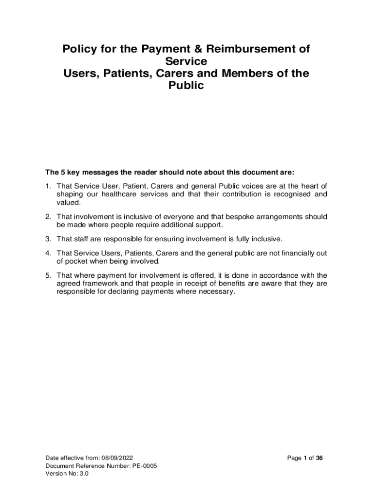 Get the free Policy for the Payment & Reimbursement of Service Users, ...
