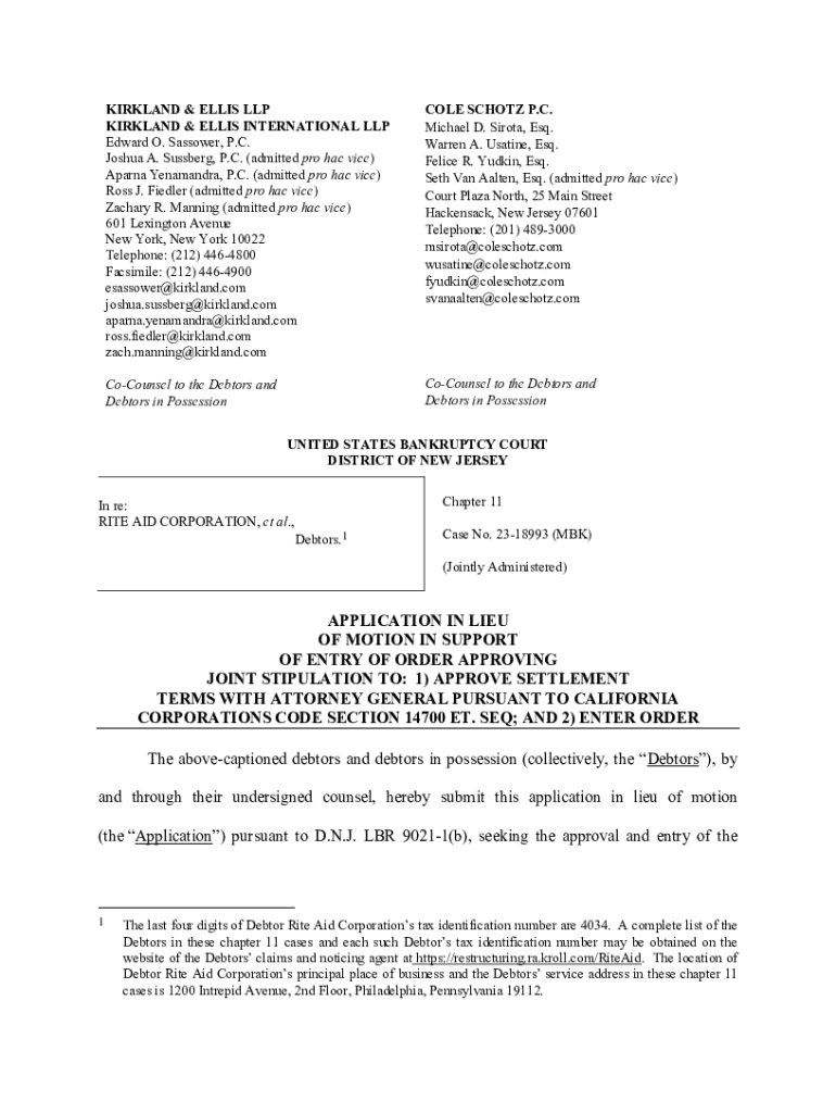 Get the free Rite Aid Corporation, 3:23-bk-18993, No. 18 (Bankr.D.N.J. Oct ... - oag ca