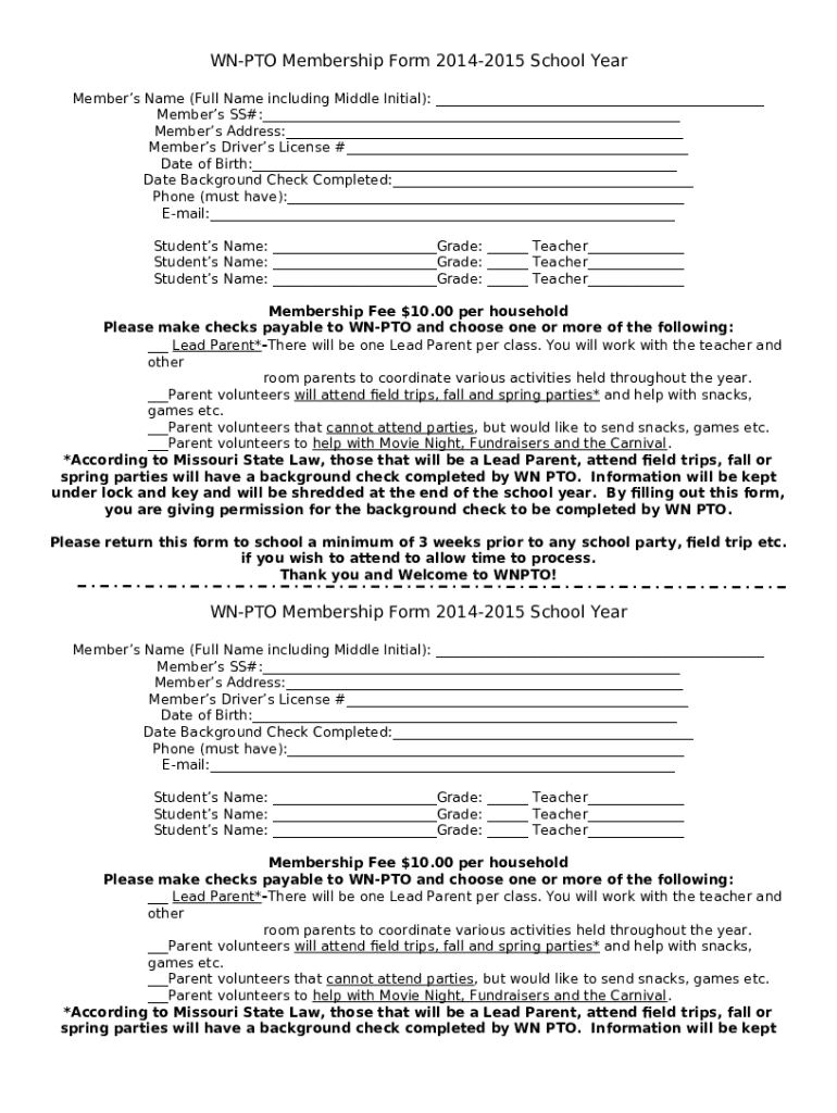 What is Wn-pto Membership Form?