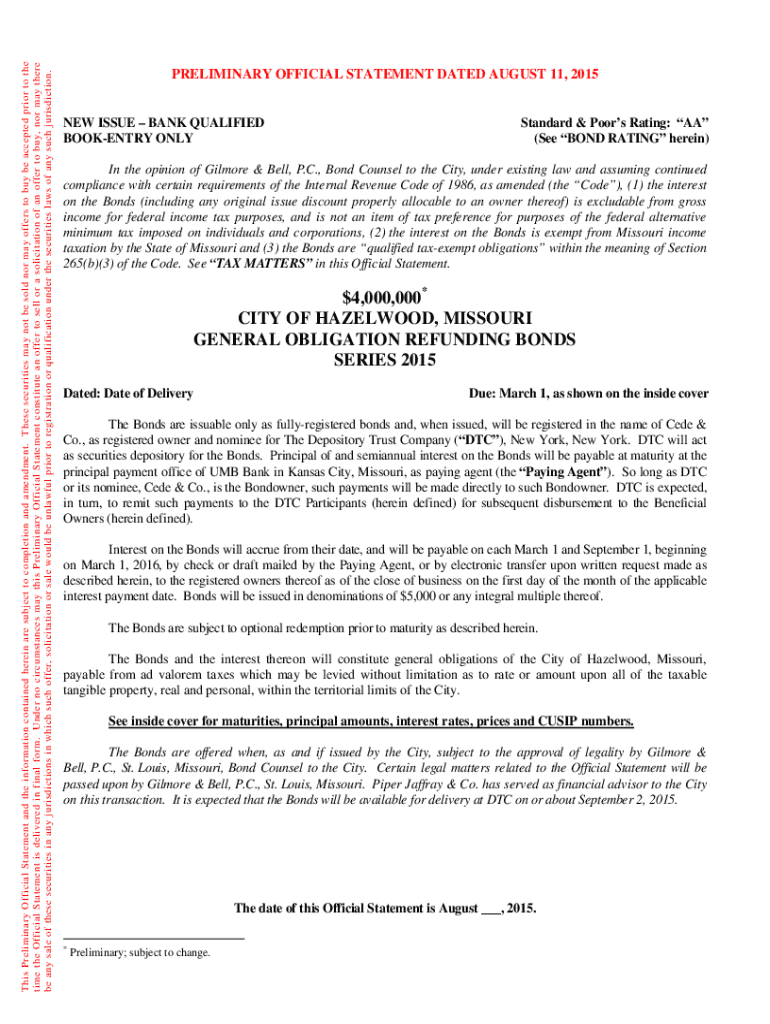 This Preliminary Official Statement and the information contained herein are subject to completion and amendment. These securities may not be sold nor may offers to buy be accepted prior to the time