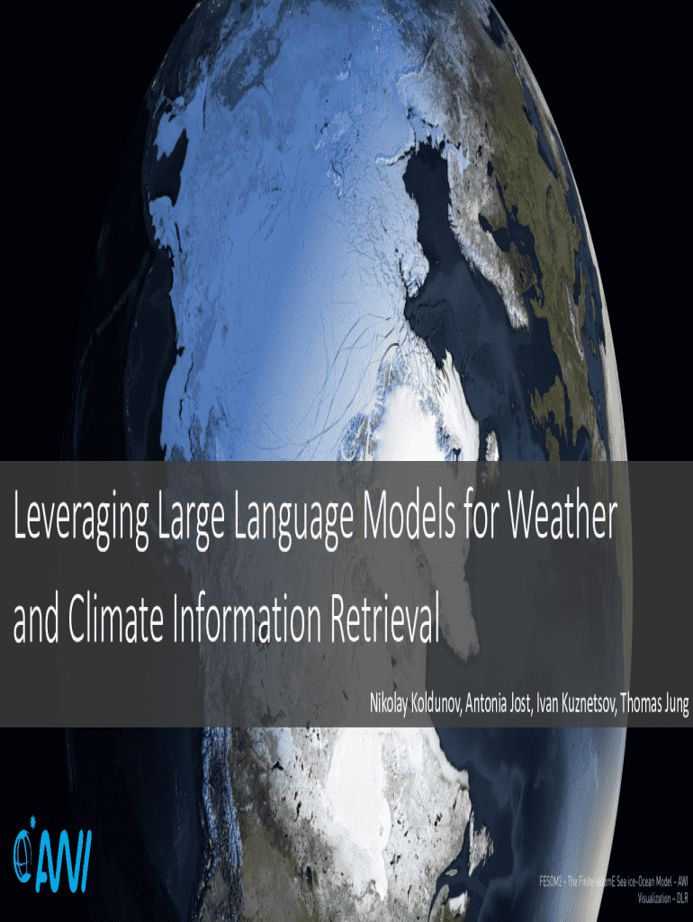 Leveraging Large Language Models for Weather and Climate Information Retrieval Nikolay Koldunov, Antonia Jost, Ivan Kuznetsov, Thomas JungWhat is LLM? Large Language Models (LLMs) use vast datasets