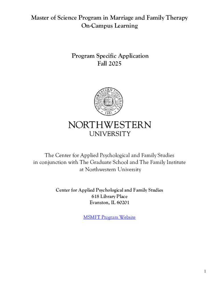 Apply for the Master of Science in Marriage and Family Therapy at Northwestern University for Fall 2025. Discover application requirements and deadlines.