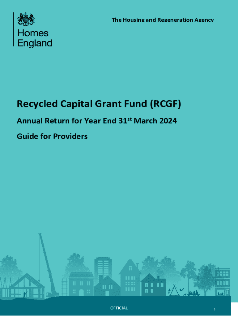 The Housing and Regeneration AgencyRecycled Capital Grant Fund (RCGF) Annual Return for Year End 31st March 2024 Guide for ProvidersOFFICIAL1CONTENTS 1. 2. 3. 4. 5. 6. 7. 8. 9. 10.Introduction RCGF