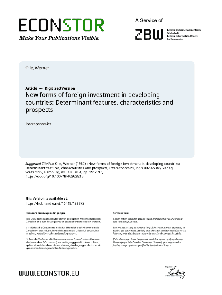 Ollie, WernerArticle Digitized Versioned forms of foreign investment in developing
