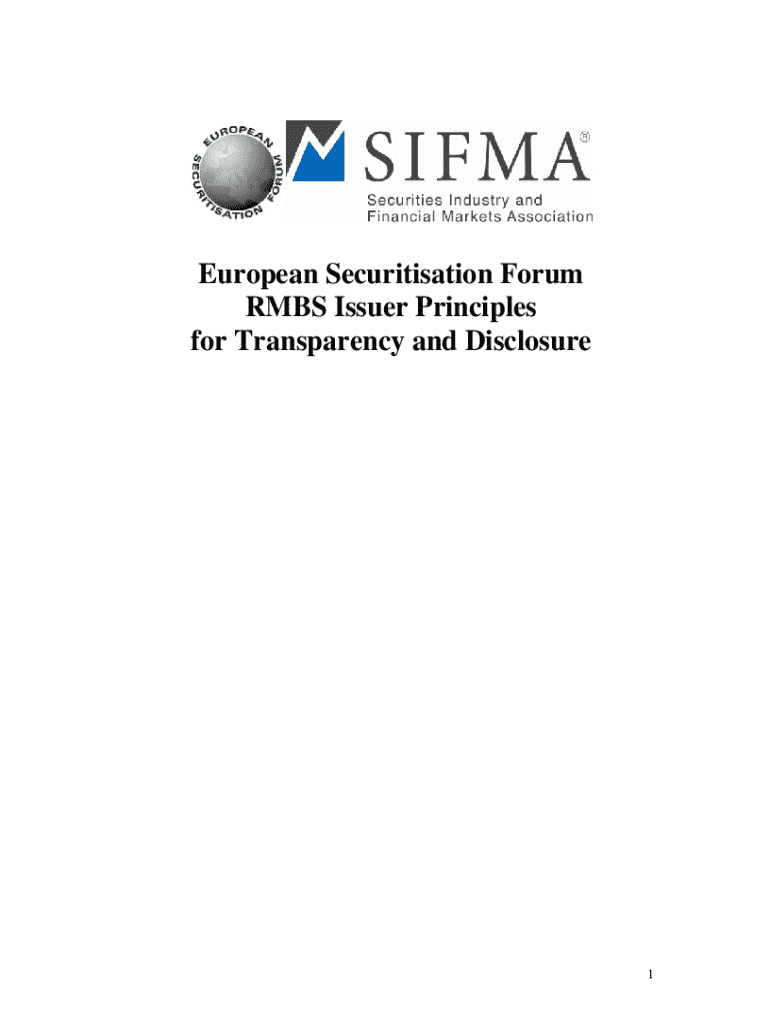 Get the free Final ESF RMBS Issuer Principles for Transparency and Disclosure 23Dec08 2.DOC