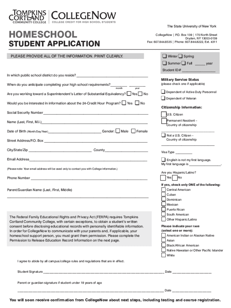 Complete the CollegeNow Student Application for homeschooling in 2023. Provide information for college enrollment and get guidance on high school equivalency.