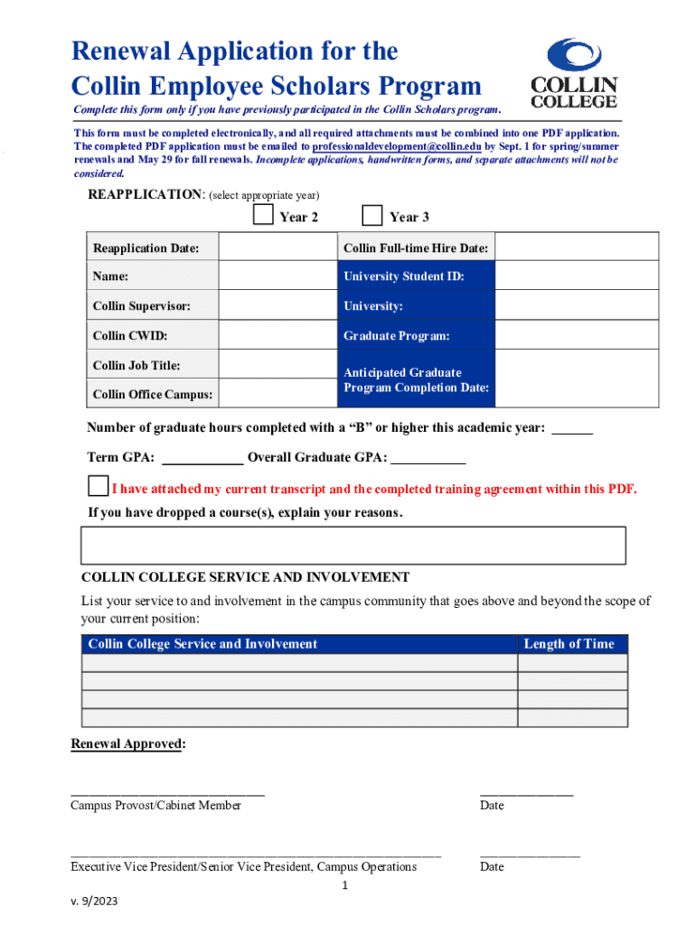 Get the free Renewal Application for the Collin Employee Scholars ...