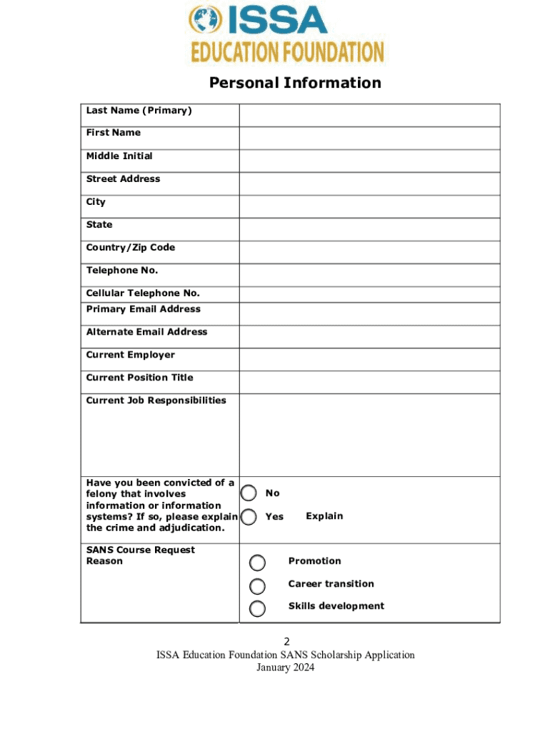 Get the free Sans E. Eugene Schultz, Jr., Memorial Training Scholarship Application