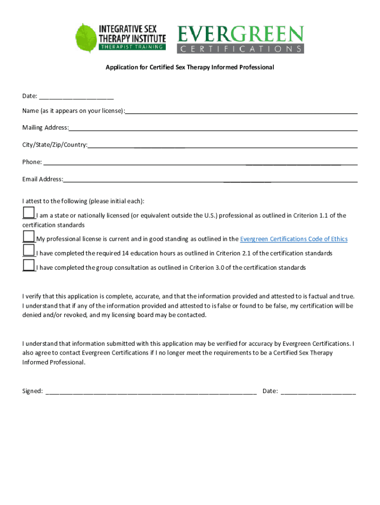 Apply for certification as a Sex Therapy Informed Professional. Ensure your qualifications meet criteria for approval. Complete application accurately.