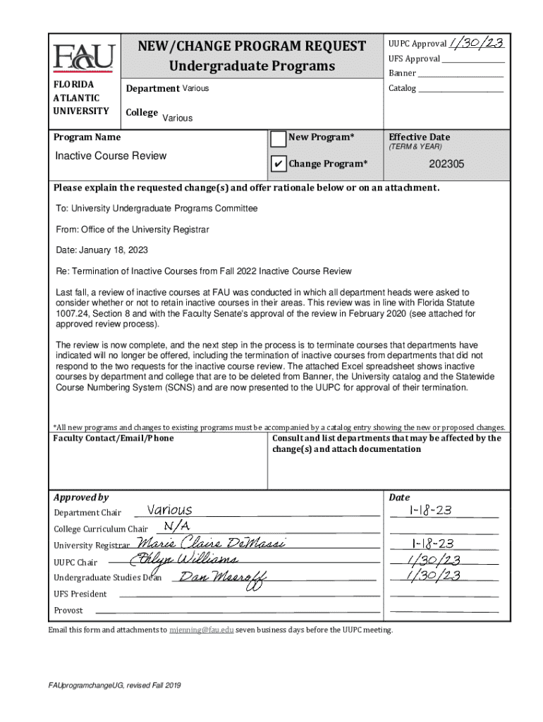 CollegeUUPC Approval ___VariousProgram Name Program×Effective