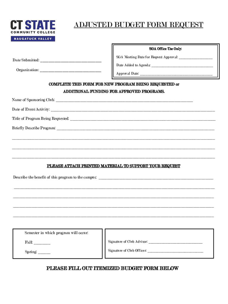 HOW TO REQUEST AN ADJUSTMENT OF FUNDING FROM THE STUDENT GOVERNMENT ASSOCIATION STEP 1:Discuss with your club membership the specific goals you wish to accomplish. STEP 2:Following your goal, developed