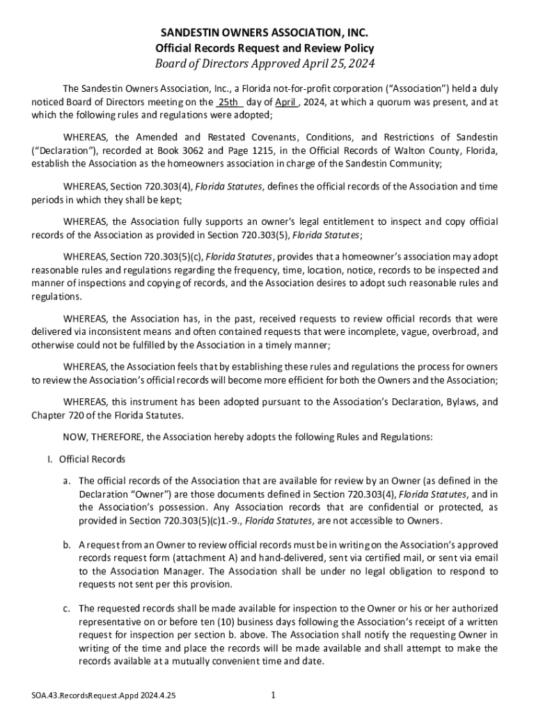 Learn about the Sandstone Owners Association\'s rules for reviewing official records, ensuring homeowners can inspect documents efficiently and legally.