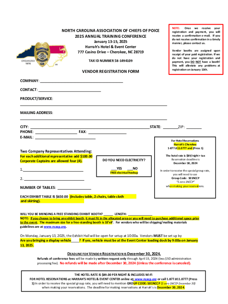 Register for the 2025 NC Association of Chiefs of Police Annual Training Conference. Secure your vendor booth and hotel reservations before the December 30 deadline.