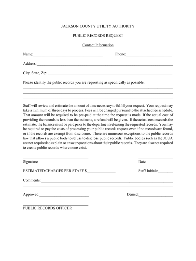 Get the free Public Records Request Form