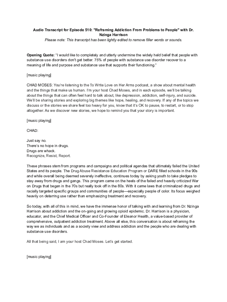 Fill out your audio transcript for episode online with pdfFiller!