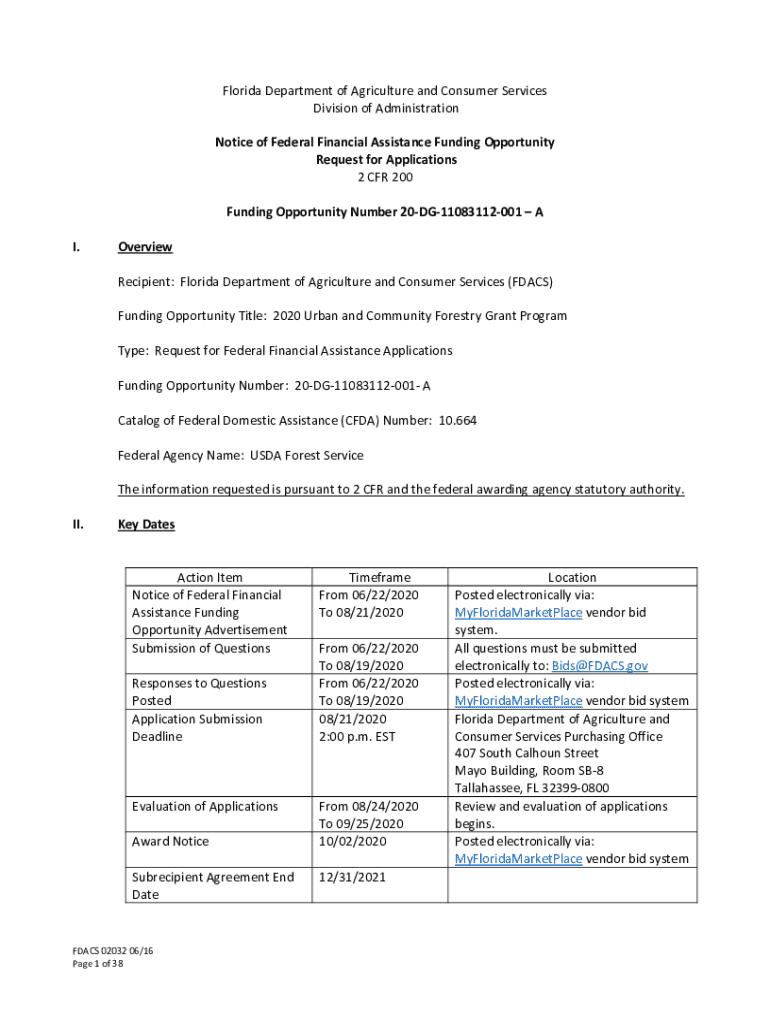 Get the free Florida Department of Agriculture and Consumer Services - Notice of Federal Financia...