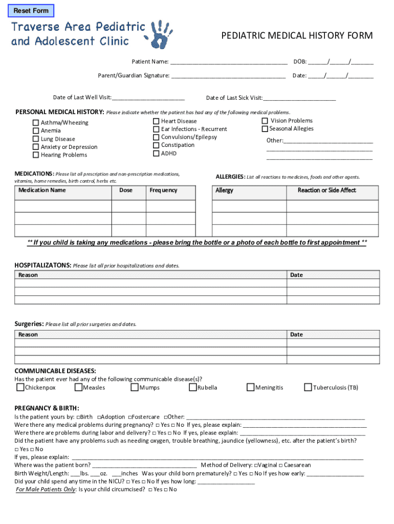 Fill out your pediatric medical history form online with pdfFiller!