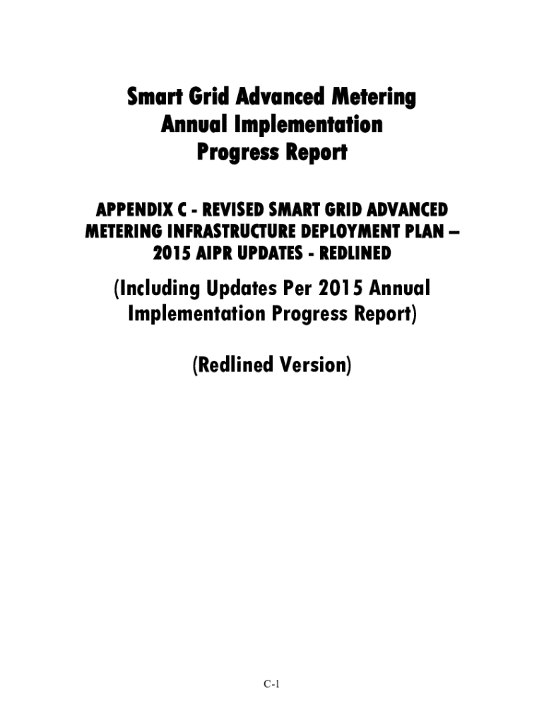 Smart Grid Advanced Metering Annual Implementation Progress Report APPENDIX C REVISED SMART GRID ADVANCED METERING INFRASTRUCTURE DEPLOYMENT PLAN 2015 AIPR UPDATES REDLINED(Including Updates Per 2015 Annual Implementation Progress Report) (Redlined Version)C1Revised Smart Grid Advanced Metering Infrastructure Deployment Plan (Including Updates Per 2015 Annual Implementation Progress Report Order dated June 11, 2014 in ICC Docket Nos. 140212, 130285, and 120298 (cons.)) Submitted