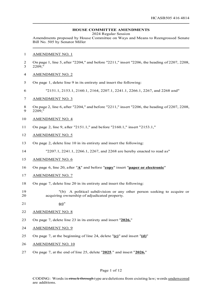 HCASB505 416 4814 HOUSE COMMITTEE AMENDMENTS 2024 Regular Session Amendments proposed by House Committee on Ways and Means to Re engrossed Senate Bill No. 505 by Senator Miller1AMENDMENT NO. 12 3On