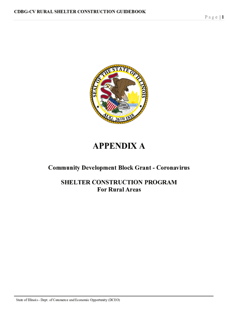 CDBGCV RURAL SHELTER CONSTRUCTION GUIDEBOOKAPPENDIX A Community Development Block Grant Coronavirus SHELTER CONSTRUCTION PROGRAM For Rural AreasState of Illinois Dept. of Commerce and Economic Opportunity