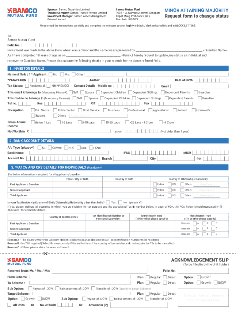 Sponsor: Samco Securities Limited Trustee Company: Samco Trustee Private Limited Investment Manager: Samco Asset Management Private LimitedMINOR ATTAINING MAJORITY Request form to change statusSamco