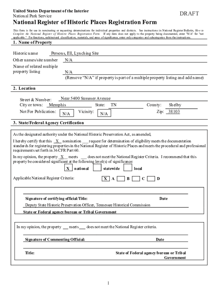United States Department of the Interior National Park ServiceDRAFTNational Register of Historic Places Registration Form This form is for use in nominating or requesting determinations for individual