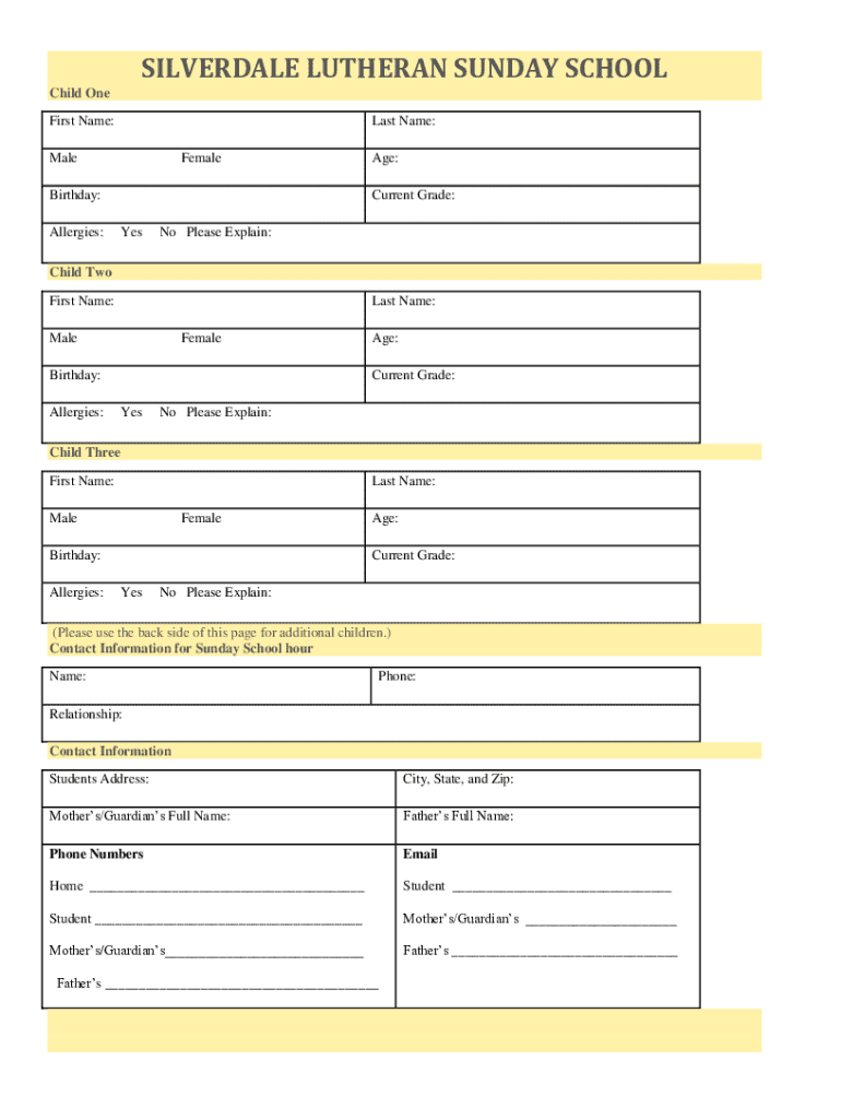 Get the free Sunday School Registration and Permission Form
