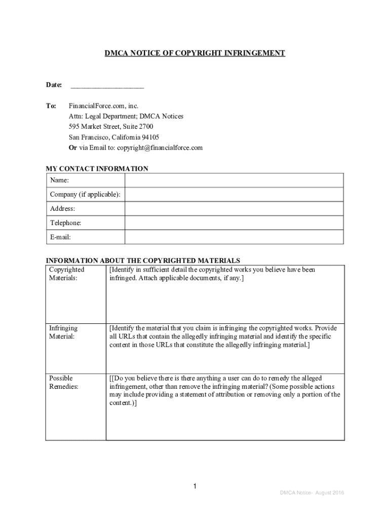 Fill out your infringement claims dmca policy online with pdfFiller!