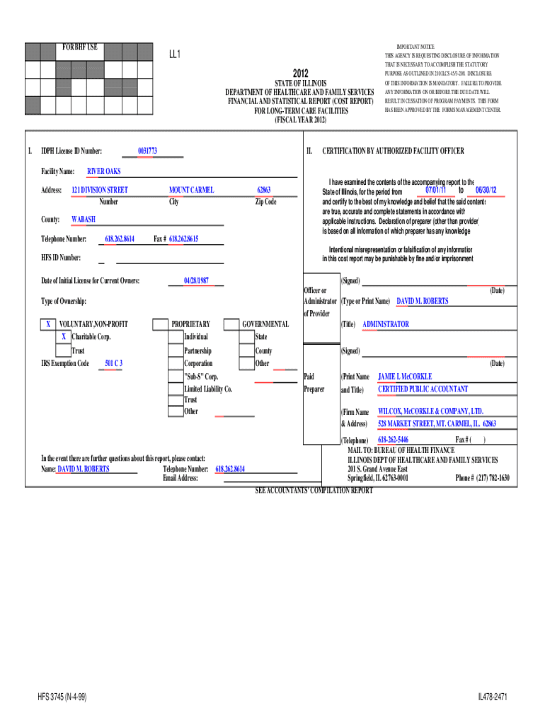 FINANCIAL AND STATISTICAL REPORT (COST REPORT)