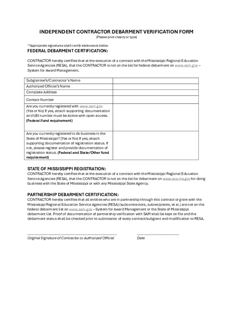 Get the free Independent Contractor Debarment Verification Form