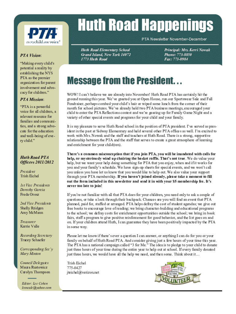 PTA Newsletter NovemberDecemberPTA Vision:
