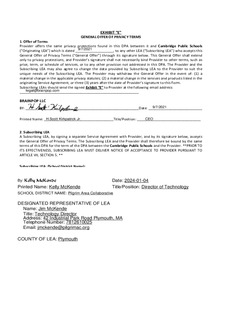 This document outlines the privacy protections offered by BrainPOP LLC to LEAs under a General Offer of Privacy Terms, ensuring compliance with applicable statutes.