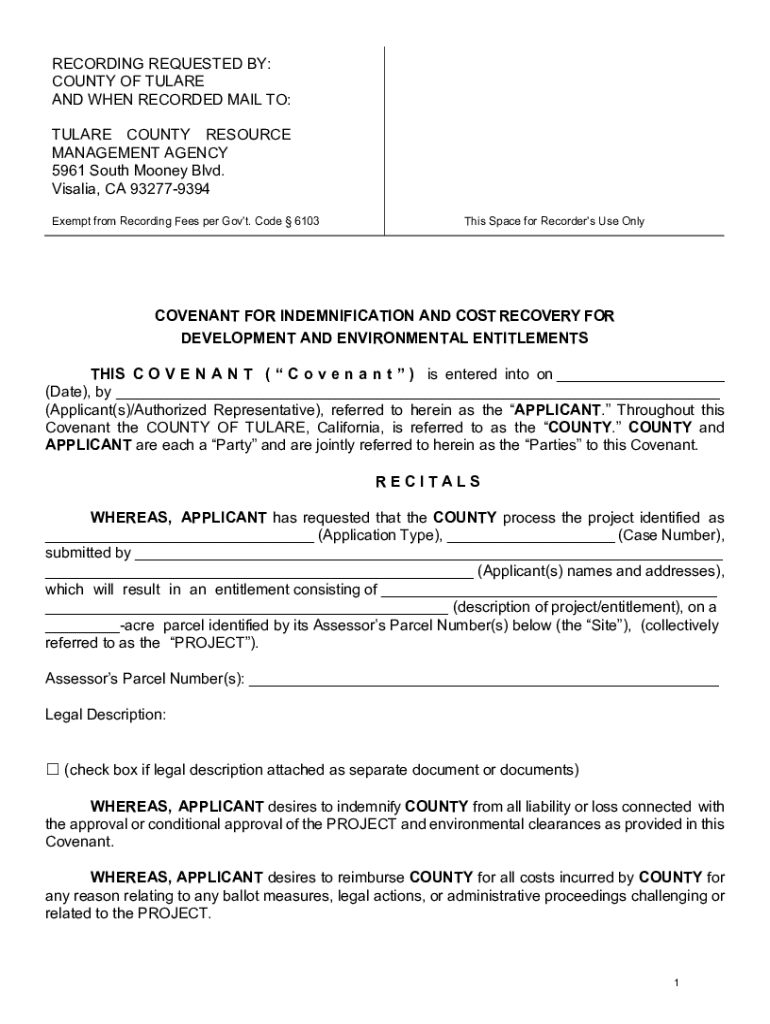RECORDING REQUESTED BY: COUNTY OF TULARE AND WHEN RECORDED MAIL TO: TULARE COUNTY RESOURCE MANAGEMENT AGENCY 5961 South Mooney Blvd. Visalia, CA 932779394 Exempt from Recording Fees per Govt. Code
