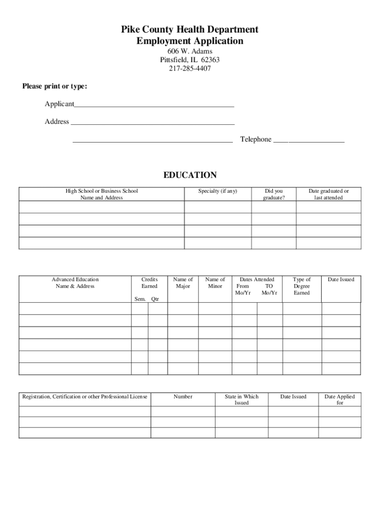 Apply for a position at Pike County Health Department with this straightforward employment application. Submit your details and experience to join our team.
