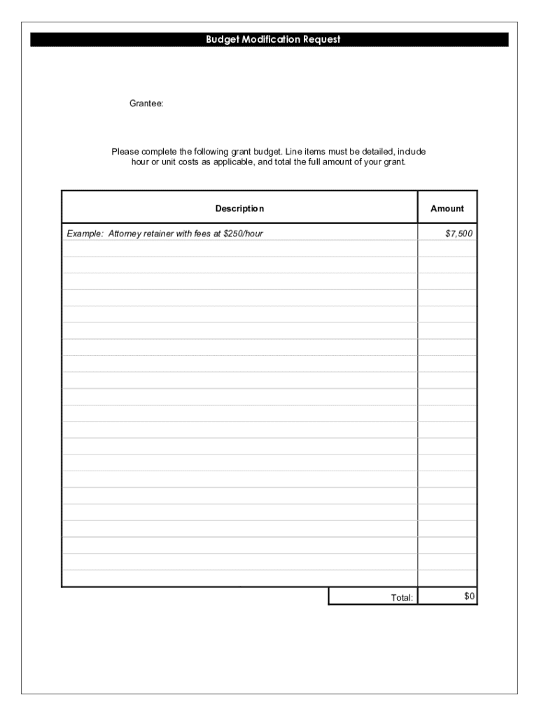 Get the free Budget Modification Request