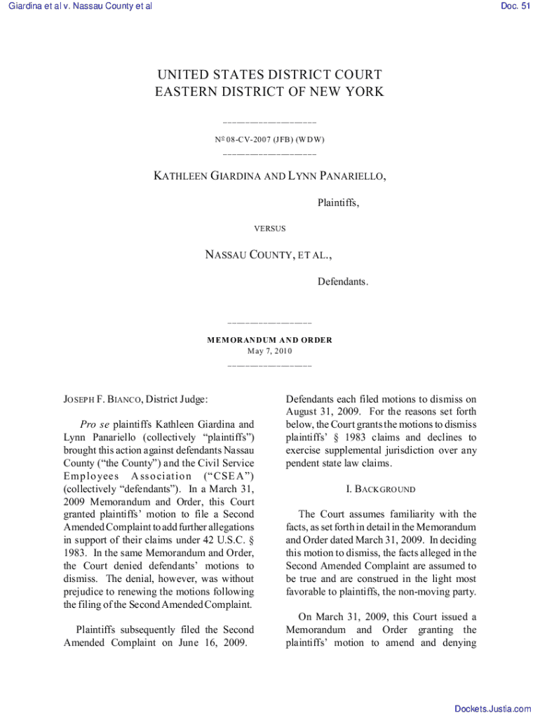 Guardian et al. v. Nassau County et Aldo. 51UNITED STATES DISTRICT COURT EASTERN DISTRICT OF NEW YORK ___ N o 08CV2007 (JOB) (W DW) ___KATHLEEN GUARDING AND LYNN AMARILLO, Plaintiffs, VERSUSNASSAU
