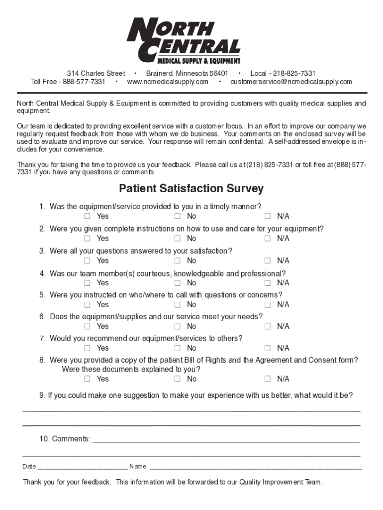 Participate in our 2023 Patient Satisfaction Survey to help us improve our medical services and equipment at North Central Medical Supply.
