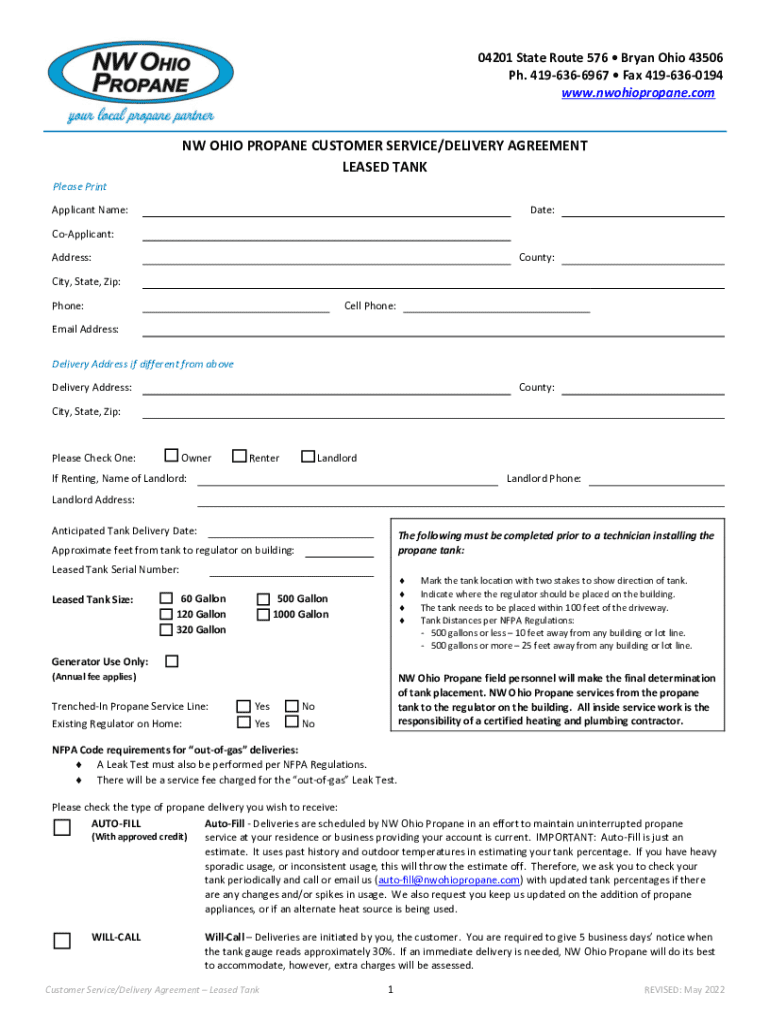 Get the free Nw Ohio Propane Customer Service/delivery Agreement