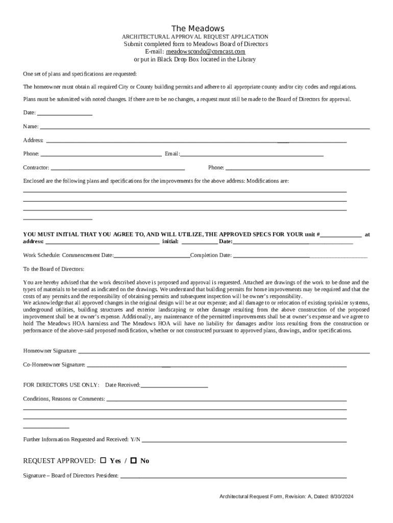 How to fill out ARCHITECTURAL APPROVAL REQUEST APPLICATION