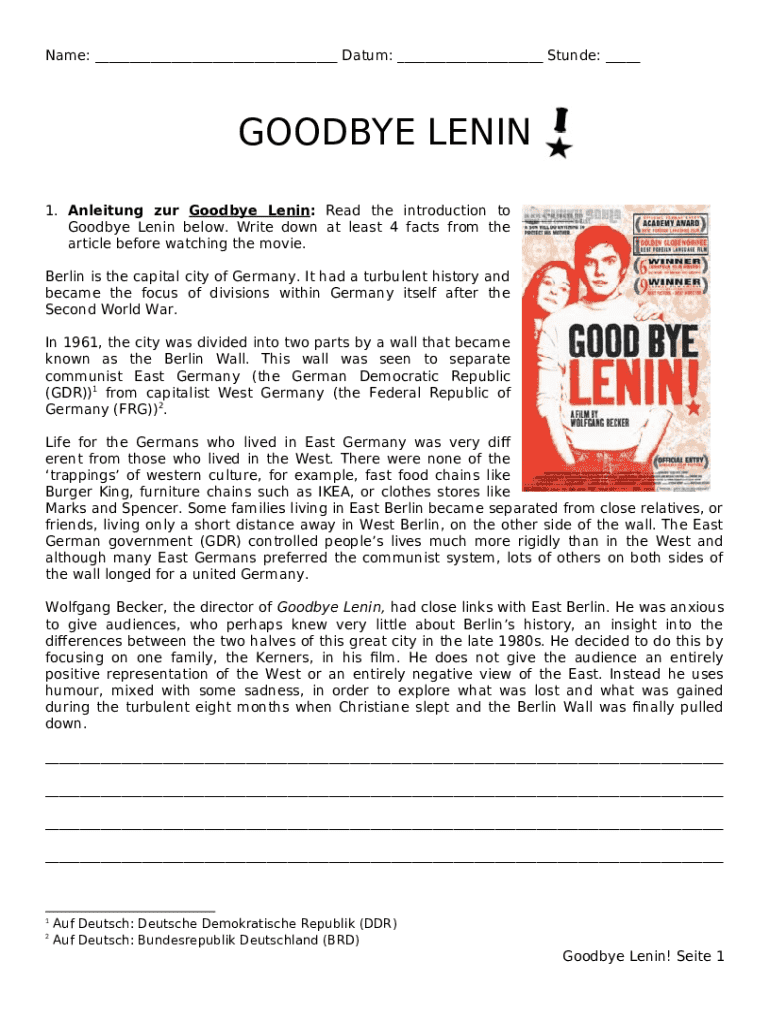 Mastering "Goodbye Lenin": A Comprehensive A-Level ... template instructions