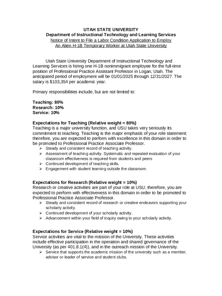 Instructions for the form Notice of Intent to File a Labor Condition Application