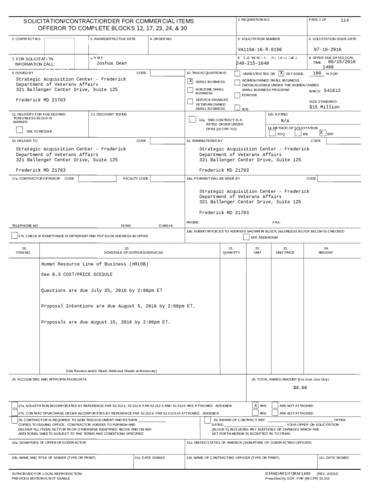 Instructions for the HRLOB - RFP - Solicitation 121-Jul-16 - FBO#5354 form