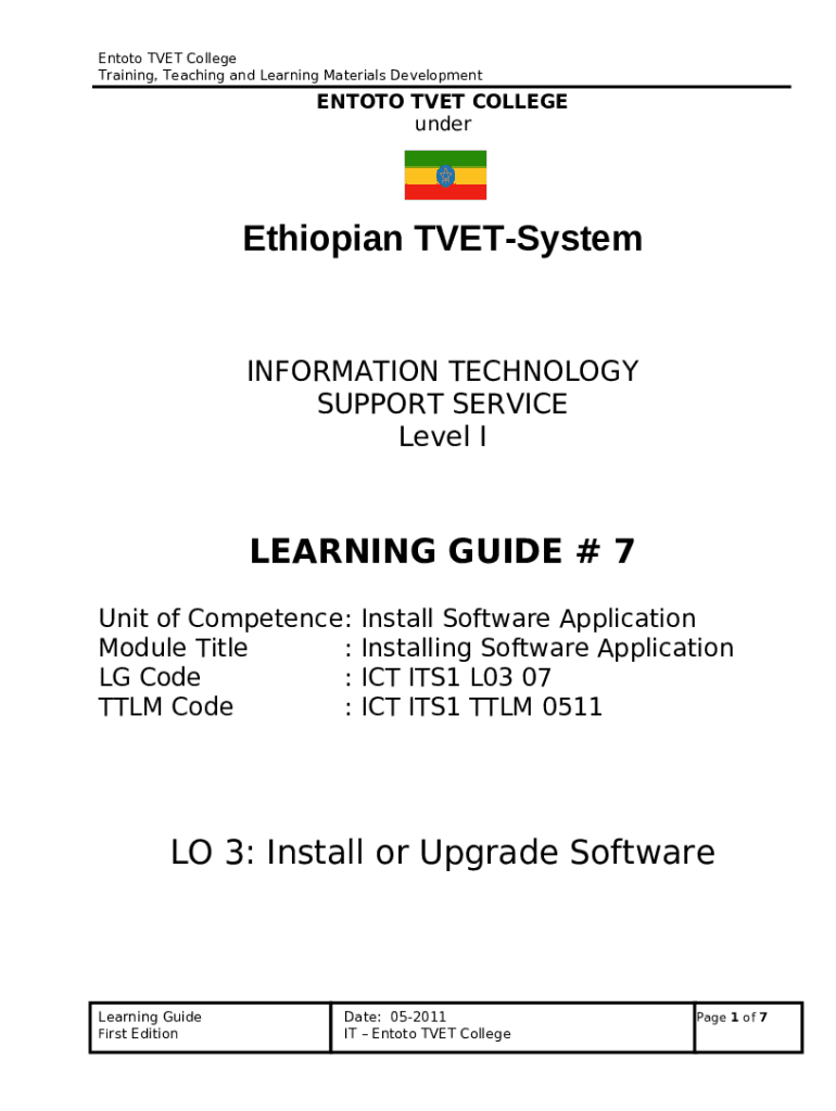 Instructions for the form Ethiopian TVET System: LG CodeDownload Free PDF