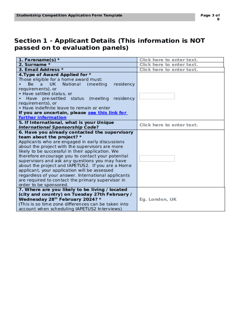 What is Studentship Competition Application Template 2023-24 Form?